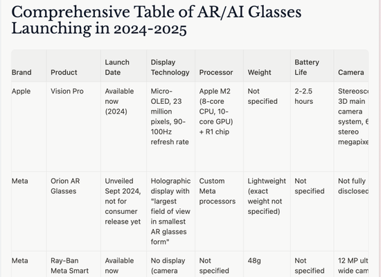 Manus 自己找到并研究了 24 年所有重要的 AR/AI 产品和行业动态