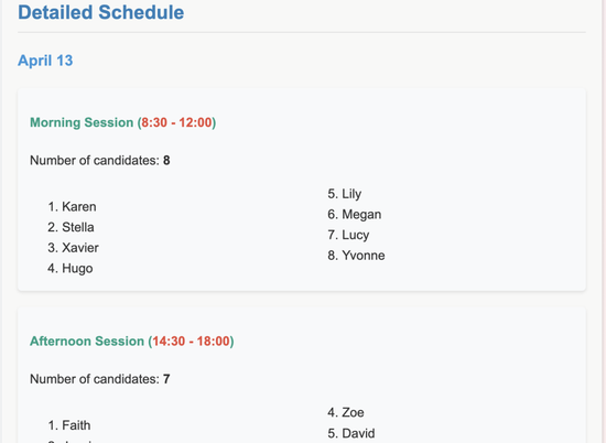 来看看 Manus 是高效合理的安排 40 位候选人的时间