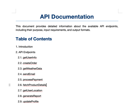 把你的 API excel 文档交给 Manus,让他为你转换成一个详尽的 doc 版本的 API 文档。