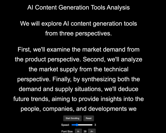 你下一场的演讲需要个逐字稿提词器?Manus 将贴心地为你制作一个可控制速度、可控制字体大小、阅读清晰的 presentattion 文件