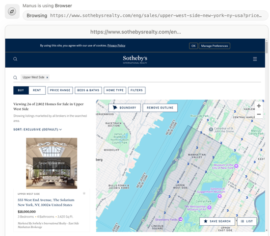 Manus 将深入理解和分析你的家庭情况和需求,并去专业的房产销售网站为你筛选最符合需求的标的。