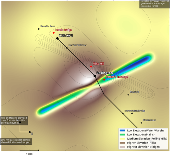 Manus 为我们讲解莱克星顿第一枪的战役过程时,配上了自己画的可视化地图