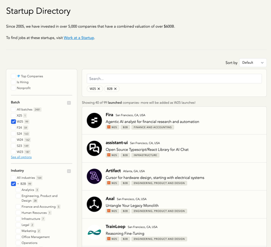 我们想要 YC w25 batch 中所有的 B2B 公司的名单,Manus 自己操作 YC 官网筛选出符合要求的公司,并高效完成任务